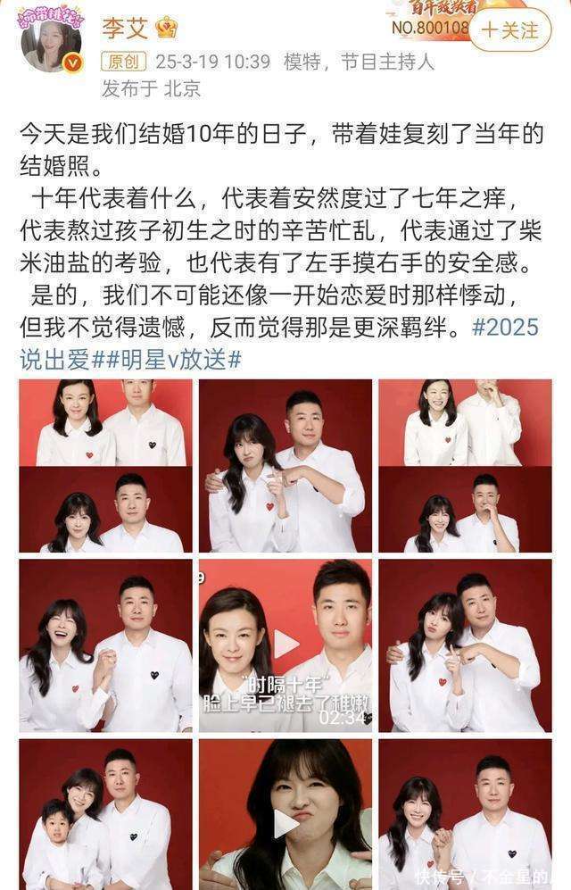 李艾在酬酢平台上晒出的像片和视频,就像是绽放了一个通往他们幸福寰宇的窗户。从二东谈主寰宇到一家三口,李艾发文描绘这个流程:“今天是咱们成婚10年的日子,带着娃复刻了当年的成婚照。十年代表着什么,代表着坦然渡过了七年之痒,代表熬过孩子初生之时的封锁忙乱,代表通过了生老病死的检修,也代表有了左手摸右手的安全感。”这看似浅易的语言,却像是一篇婚配生存的教科书,让好多网友闭目掩耳。